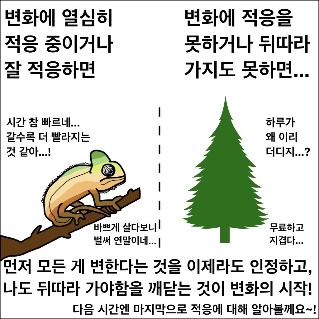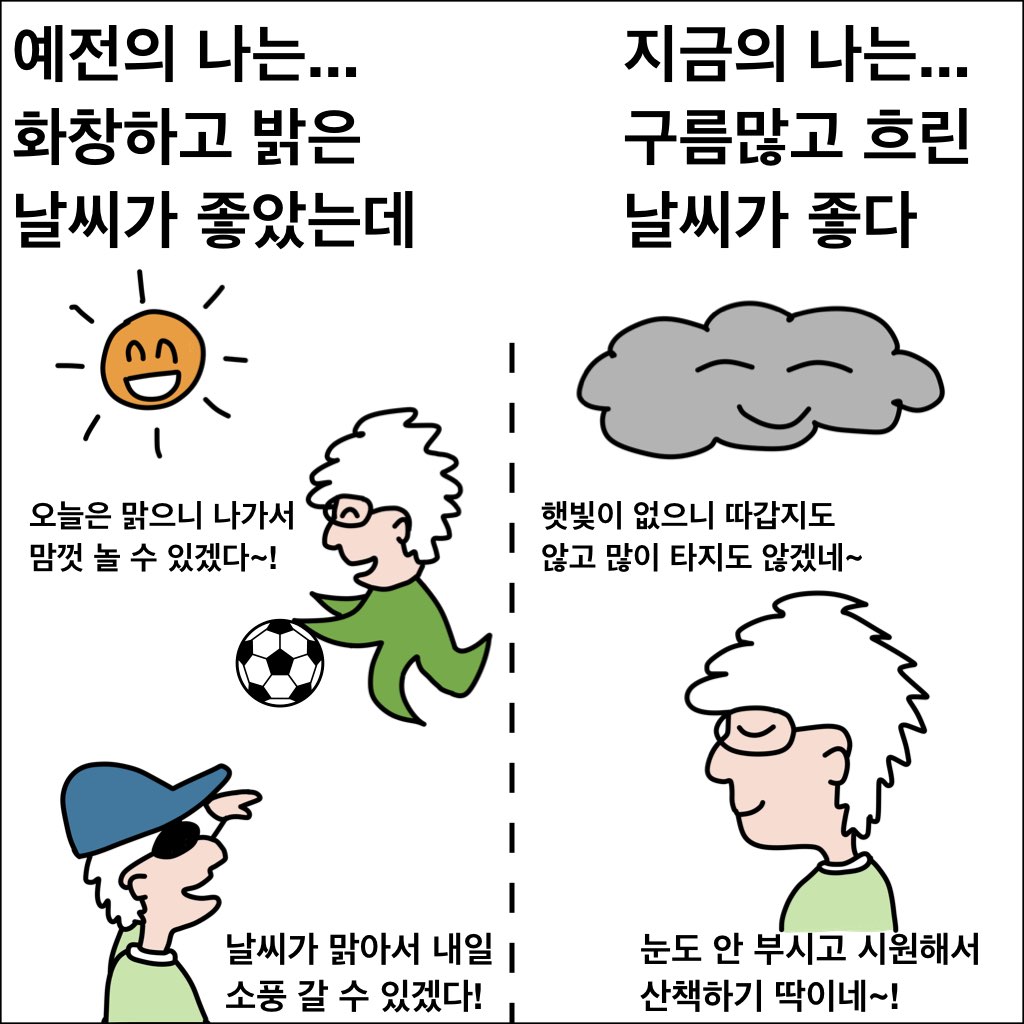잘 생각해보면 이 세상에는 정말 많은 것이 변한다. 우리가 발 디디고 있는 이 지구만 봐도 매 순간 위치가 변하여 날씨와 계절을 만들어내고 있고, 지구 위에 존재하는 모든 생명체들도 끊임없이 태어나서 성장하고 죽음에까지 이르는 그런 순간순간의 변화를 경험하고 있다. 그런 거 아니라도, 자기 자신만 제대로 바라본다면 '내가 계속 변하고 있구나!' 하는 것을 충분히 느낄 수 있다.