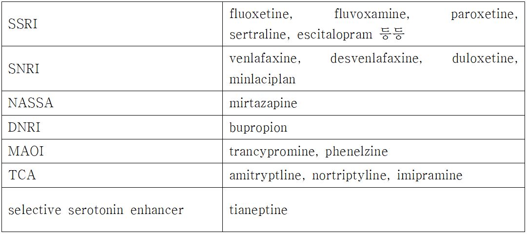 1) 항우울제의 종류