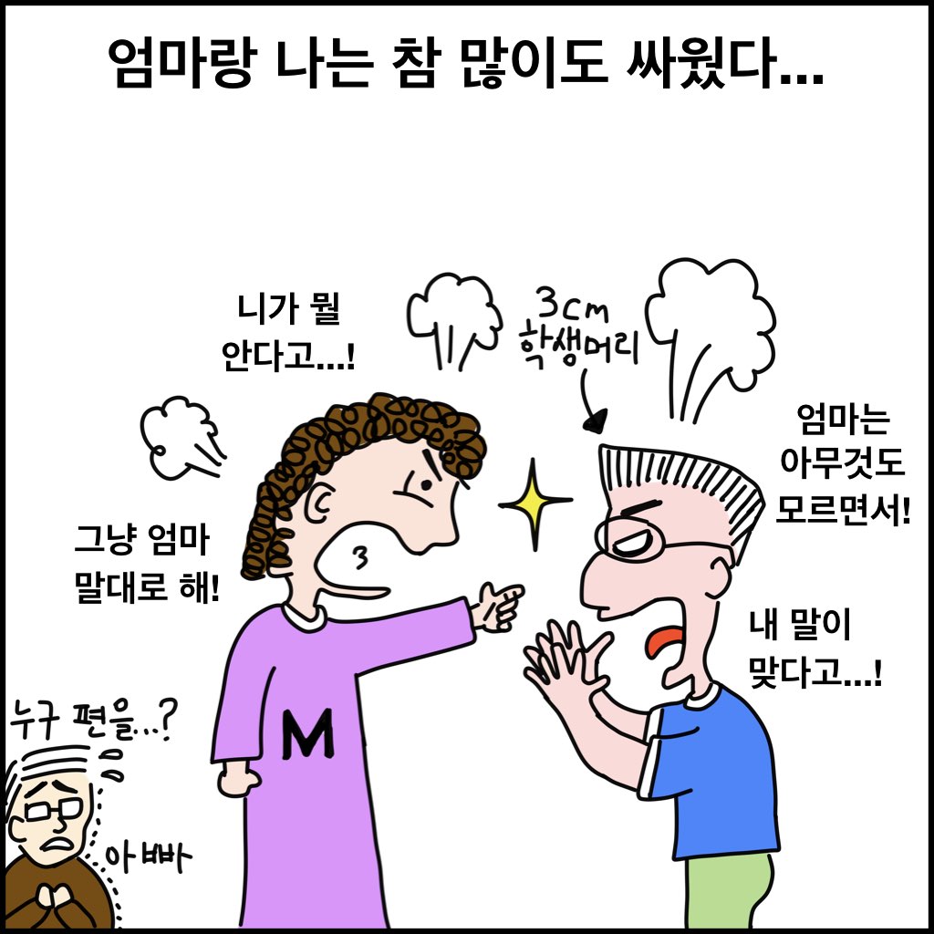 엄마도 사실은 좀 직설적인 성격이라, 대놓고 당신께서 전부 옳다고 주장했기 때문에(실제로 엄마 말이 대부분 다 맞긴 했다) 더욱 반발심이 컸던 것 같다.