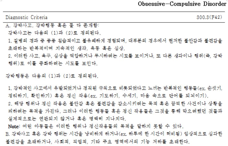 강박증은 강박 사고(본인의 의지와 무관하게 어떤 생각이나 장면)가 지속적으로 떠올라 불안해지고 그 불안을 없애기 위해서 강박 행동(어떤 행동)을 반복하게 된다.