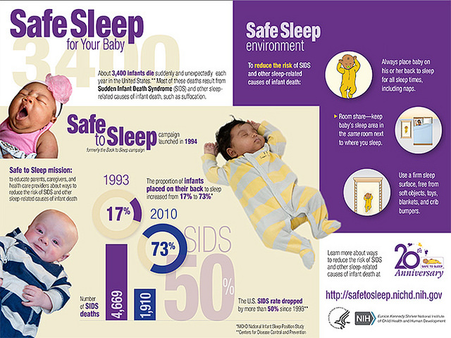1992년 미국의사협회는 “누워서 잠을(the Back to Sleep)”이란 캠페인을 통해서, 어머니들은 아기를 침대에 뉘어 놓는 법에 대해 대대적인 대중 교육을 시작했습니다. 영아 돌연사 증후군이 잠을 자며 뒤척이다 엎드린 자세에서 숨이 막힌 아기들에게 주로 일어난다는 의학적 증거들이 밝혀졌기 때문이죠. 아주 성공적인 캠페인이었습니다. 영아 돌연사 증후군은 이 캠페인 이후에, 약 절반으로 감소했습니다.