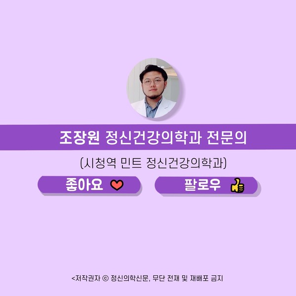 조장원 전문의의 대표칼럼 정신과 약을 복용하는 군인, 어떤 생각이 드시나요? 정신과 약을 복용하는 군인, 어떤 생각이 드시나요? [카드뉴스] 인생이 잘 안 풀리는 사람들의 무의식적인 말버릇 [카드뉴스] 젊은 꼰대 - 수직적 인간관계에 익숙한 사람들 [카드뉴스] 유독 걱정이 많은 사람이 기억하면 좋을 습관 퇴근 후 만사가 귀찮고 재미없다면?