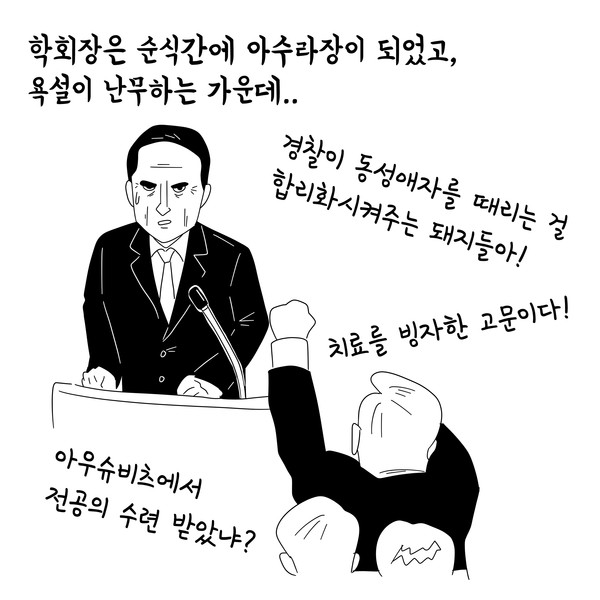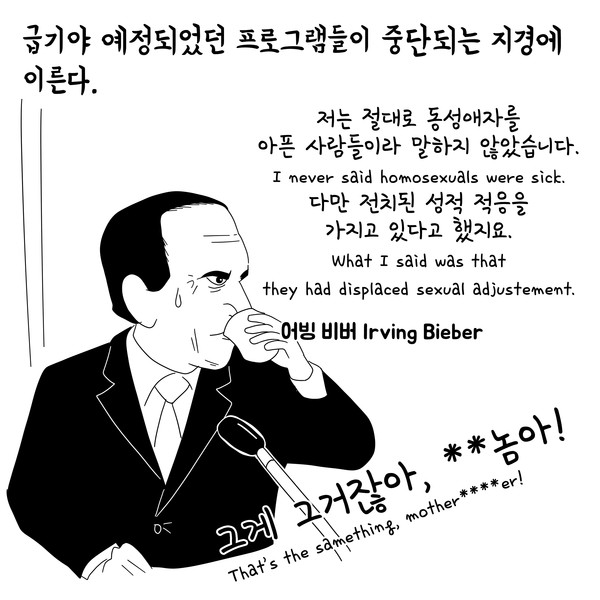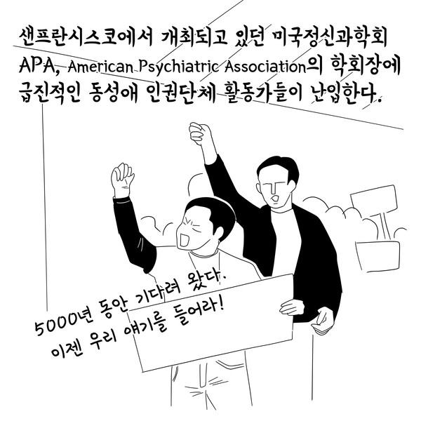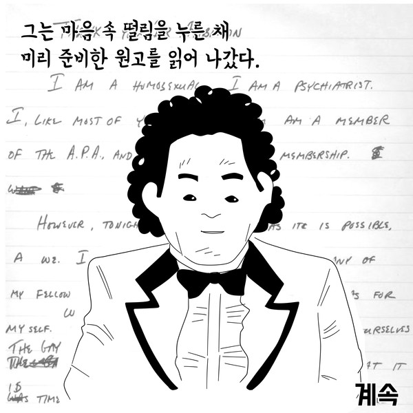 저는 동성애자입니다. 저는 정신과 의사입니다. 이 학회장에 계신 거의 대부분의 분들처럼 저도 APA의 회원입니다. 그리고 제가 그 회원이라는 게 자랑스럽습니다.