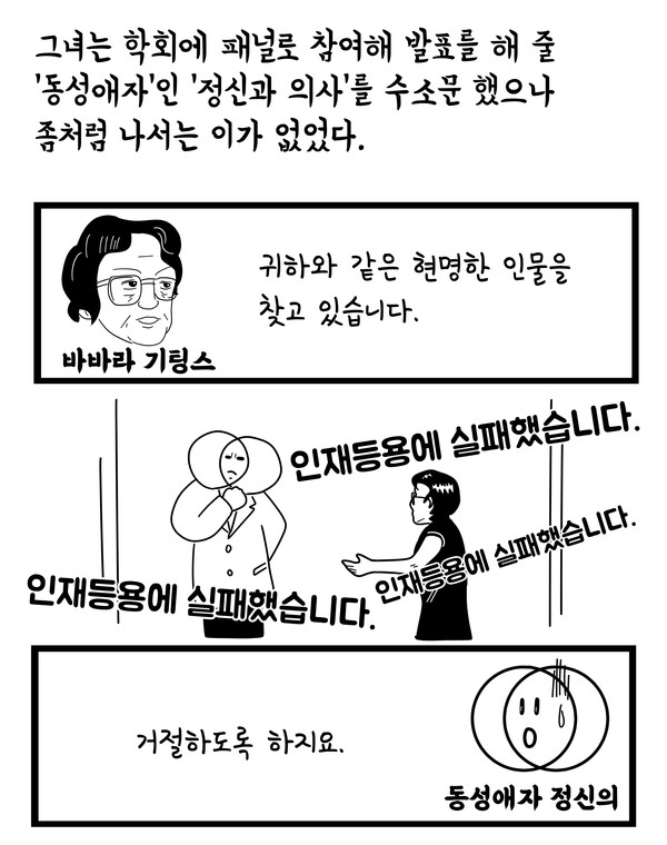 동성애자인 정신과 의사들로서 우리는 주변 사람의 건강 여부를 판정하는 권한, 우리 손아귀에 놓인 그 권한을 사려 깊게 살펴야만 합니다. 특히나 세상 속에서 건강한 동성애자로 사는 것이 어떤 일인지를 우리들만의 특별한 이해로 마음속에 분명히 새겨 두어야만 합니다. 비록 세상은 그러한 명칭을 불가능한 시대착오적 관념으로 바라볼 테지만요. - 그들은 이렇게 말하겠죠. 동성애자인 동시에 건강할 수는 없는 것 아닙니까.