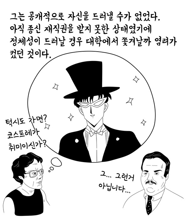 동성애자인 정신과 의사로서 우리들은, 우리가 놓여있는 처지에 대해 그리고 우리가 해서는 안 되는 일에 대해 잘 알고 있어야만 합니다. 고위 교수직을 얻고자 한다면, 동료들과 동등한 수준으로 돈을 벌고자 한다면, 혹은 정신분석 연구소에 입학하고자 한다면, 결정권을 가진 인물들로 하여금 우리의 성적 기호와 성적 정체성을 짐작하게 만들어서는 안 됩니다. 백인으로 살고 싶어 하는 밝은 피부색을 가진 흑인들의 처지와도 흡사하게, 우리는 비밀이 탄로 나지 않도록, 우리의 불행한 운명이 감춰진 채로 있을 수 있도록, 우리의 진짜 친구들 즉 우리의 진짜 동성애자 가족들과 함께 있는 모습을 비추어서는 안 됩니다. 우리들 가운데에는 정신분석 수련 기간 동안 교육 분석가에게 자신의 동성애에 관한 이야기를 단 한마디도 못 한 채 수련을 끝마치고서 정신분석가로 활동하는 이들이 있습니다. 잃을 것이 거의 없는 이들만이 기꺼이 공공연히 말할 수가 있습니다. 그런 까닭에 그들은 간과됩니다.