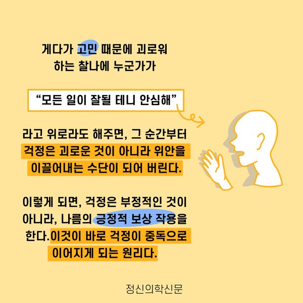 김병수 전문의의 대표칼럼 [카드뉴스] 감정기복을 줄이는 방법 나도 야식증후군일까? - 의사가 추천하는 브로콜리 테스트와 마음챙김 식사 걱정 중독에서 벗어나기 허무하고 공허해... 중년의 마음 관계를 다스리는 법 대화를 중단시키는 말들