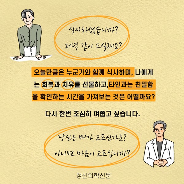 관련기사 저녁 같이 드실래요? 팔호광장 Instagram@palhosquare 다른기사 보기 저작권자 © 정신의학신문 무단전재 및 재배포 금지 추천 뉴스 매 맞는 여성 증후군 - 사랑이라는 이름의 폭력이 남기는 상처 얼만큼 운동해야 우울증을 예방할까? 약만으로 부족할 때, 우울증에 효과적인 운동은 이것입니다 영웅의 숨겨진 아픔 - 소방관 트라우마 불안이 쉽게 사라지지 않는 뇌과학적 이유 [신간소개] 당신의 상처는 사적이지 않다 수면다원검사를 꼭 받아봐야 하는 사람 (Part 3) 우울증에 좋은 운동은 뭘까 댓글삭제 삭제한 댓글은 다시 복구할 수 없습니다. 그래도 삭제하시겠습니까? 비밀번호 닫기 기사 댓글 0 댓글 접기 댓글 내용입력 비회원 로그인 이름 비밀번호 댓글 내용입력 댓글쓰기 계정을 선택하시면 로그인·계정인증을 통해 댓글을 남기실 수 있습니다. 회원 로그인 비회원 글쓰기 이름 비밀번호 자동등록방지 로그인 옵션 창닫기 주요기사 대인기피증 사회불안장애 극복하기 [Doctor's Mail] 연속된 사업 실패, 재기를 위해 노력하지만 힘듭니다 아직은 괜찮습니다 6화 나는 언제나 완성되어가는 중이다 불안장애와 공황장애 어떻게 다른가요 수면의 질과 ADHD의 상호작용 약만으로 부족할 때, 우울증에 효과적인 운동은 이것입니다