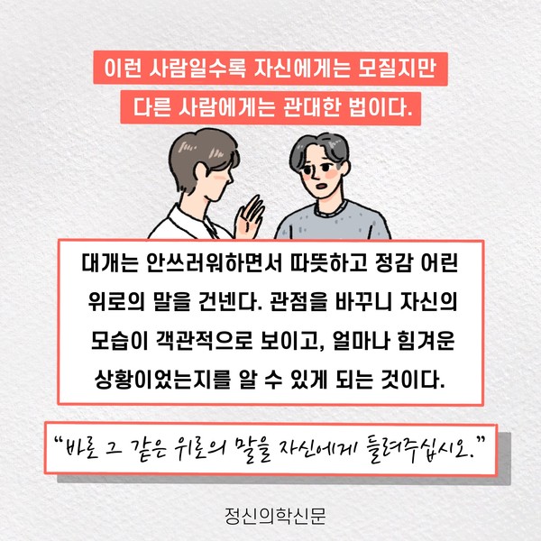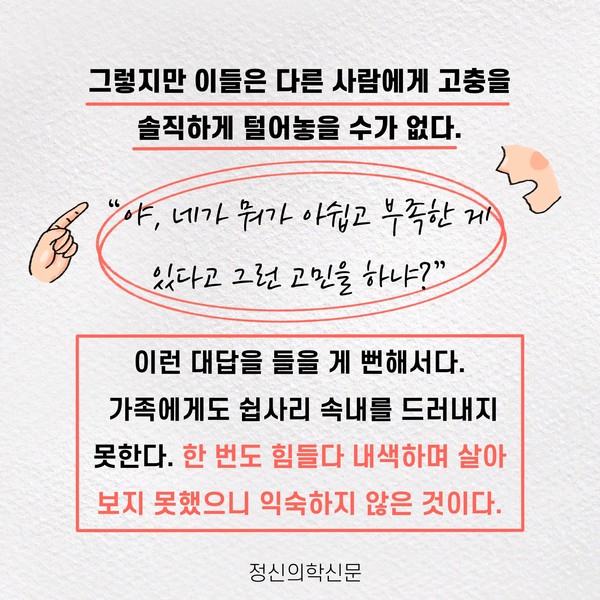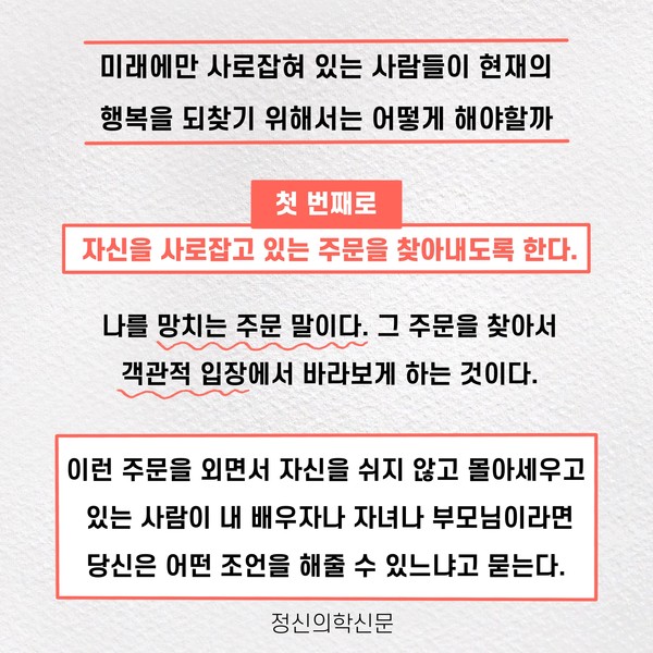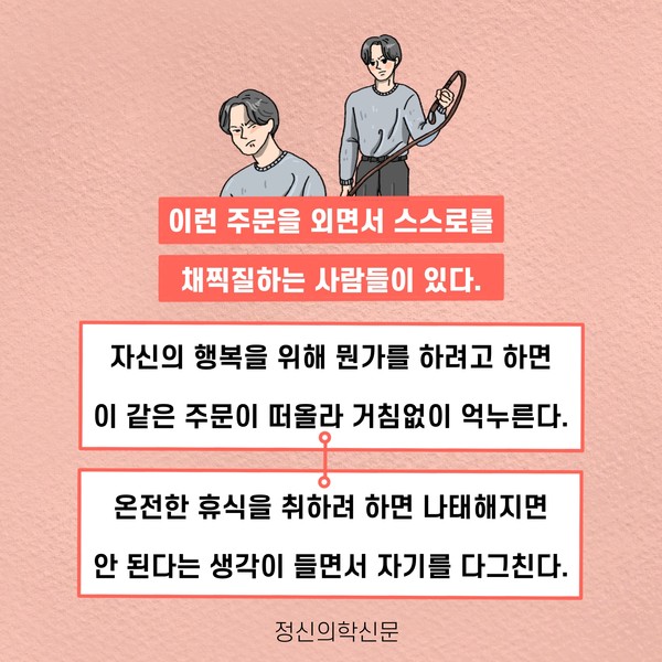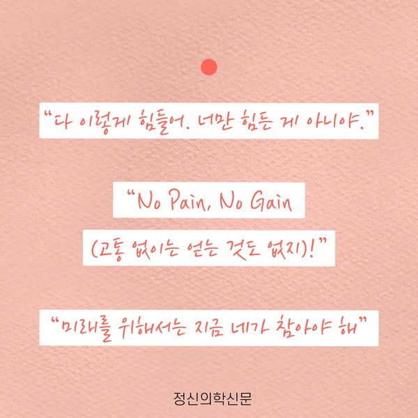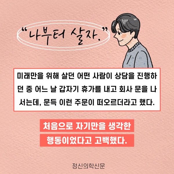 정신과 약을 복용하는 군인, 어떤 생각이 드시나요? [카드뉴스] 인생이 잘 안 풀리는 사람들의 무의식적인 말버릇 [카드뉴스] 젊은 꼰대 - 수직적 인간관계에 익숙한 사람들 [카드뉴스] 유독 걱정이 많은 사람이 기억하면 좋을 습관 퇴근 후 만사가 귀찮고 재미없다면?