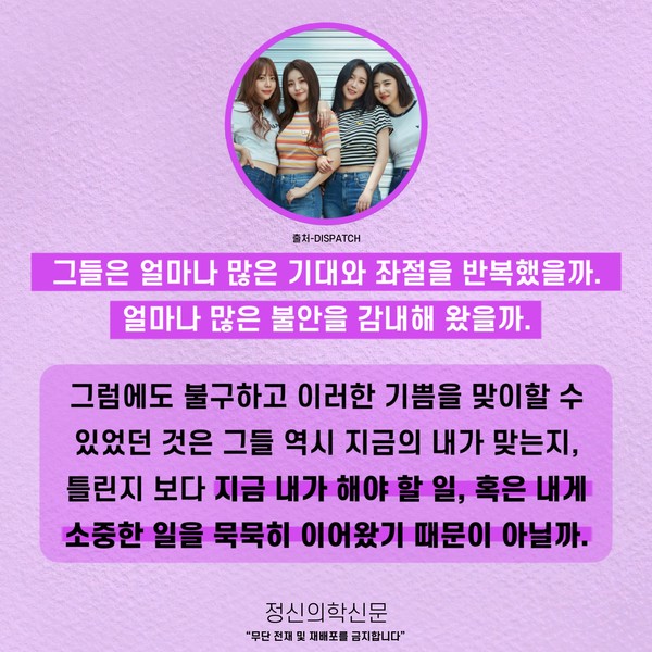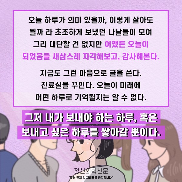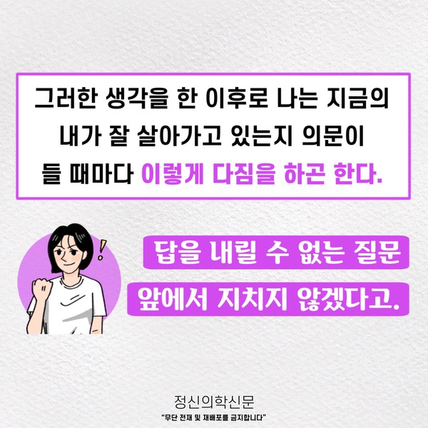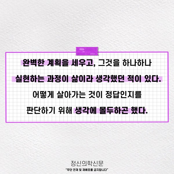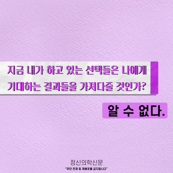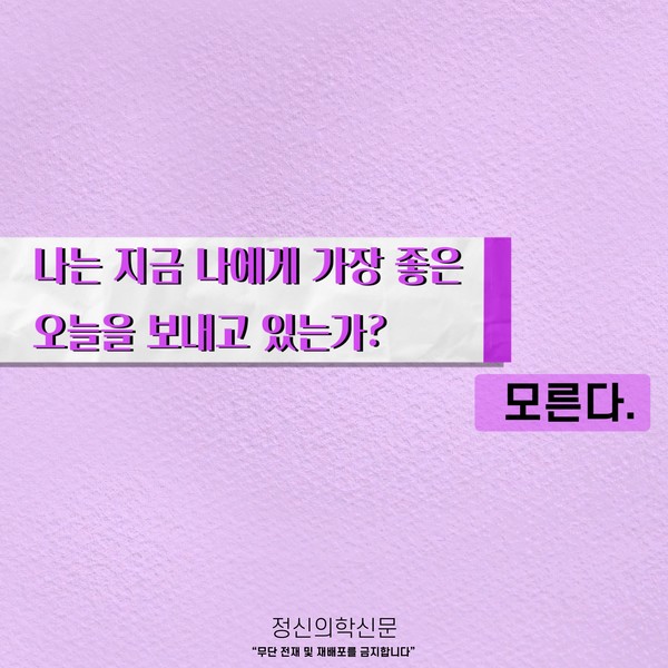 관련기사 오늘이 괜찮은지를 오늘은 알 수 없다; 잘 살아가고 있는지, 어떻게 살아야 할지 고민이라면. 키워드 #지금이순간 #브레이브걸스 이두형 정신건강의학과 전문의 info.psynews@gmail.com 다른기사 보기 저작권자 © 정신의학신문 무단전재 및 재배포 금지 추천 뉴스 매 맞는 여성 증후군 - 사랑이라는 이름의 폭력이 남기는 상처 얼만큼 운동해야 우울증을 예방할까? 약만으로 부족할 때, 우울증에 효과적인 운동은 이것입니다 영웅의 숨겨진 아픔 - 소방관 트라우마 불안이 쉽게 사라지지 않는 뇌과학적 이유 [신간소개] 당신의 상처는 사적이지 않다 수면다원검사를 꼭 받아봐야 하는 사람 (Part 3) 우울증에 좋은 운동은 뭘까 댓글삭제 삭제한 댓글은 다시 복구할 수 없습니다. 그래도 삭제하시겠습니까? 비밀번호 닫기 기사 댓글 0 댓글 접기 댓글 내용입력 비회원 로그인 이름 비밀번호 댓글 내용입력 댓글쓰기 계정을 선택하시면 로그인·계정인증을 통해 댓글을 남기실 수 있습니다. 회원 로그인 비회원 글쓰기 이름 비밀번호 자동등록방지 로그인 옵션 창닫기 주요기사 대인기피증 사회불안장애 극복하기 [Doctor's Mail] 연속된 사업 실패, 재기를 위해 노력하지만 힘듭니다 아직은 괜찮습니다 6화 나는 언제나 완성되어가는 중이다 불안장애와 공황장애 어떻게 다른가요 수면의 질과 ADHD의 상호작용 약만으로 부족할 때, 우울증에 효과적인 운동은 이것입니다