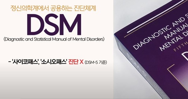 우선 첫 번째로 말씀드려야 할 것은, 현재 전 세계의 정신의학계에서 공용하는 진단체계는 DSM(Diagnostic and Statistical Manual of Mental Disorders)을 따르고 있다는 것입니다. 현재는 개정을 거쳐 DSM-5를 사용하고 있습니다.