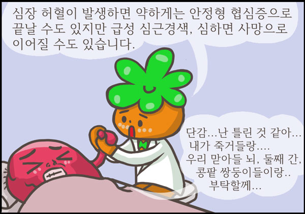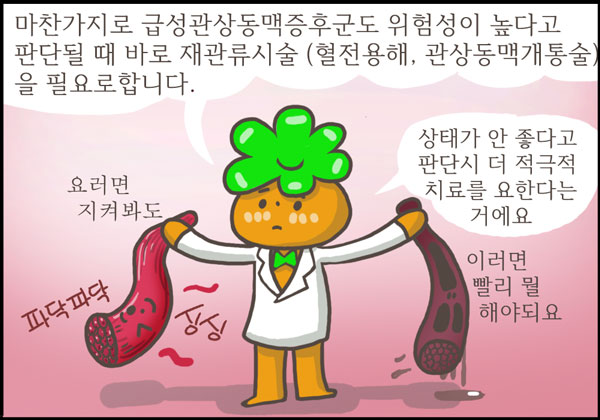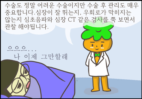 하지만 심장 문제에 관해서 가장 중요한 것은 ‘늑장 부리지 않는 것’입니다. 어느 날 나에게 찾아온 가슴의 조임이 역류성식도염의 증상일 수도 있지만 급성 심정지로 이어질 급성 심근경색일수도 있기 때문입니다. 만화에서도 표현했지만 심장을 놓치는 것은 모든 것을 잃는 것이니까요.