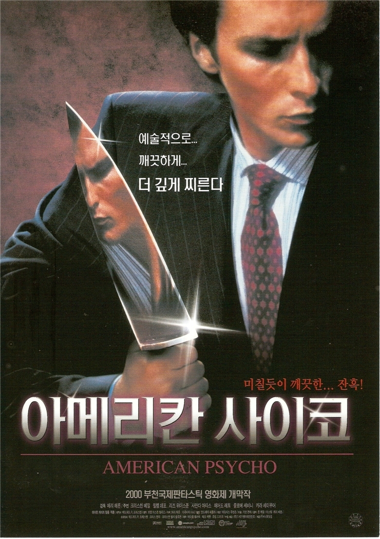 크리스찬 베일이 주연한 영화, 아메리칸 사이코는 영화 이름에서 알 수 있듯이 사이코패스에 관한 내용이다. 영화의 주인공인 패트릭은 훤칠한 키, 세련된 외모, 남들이 부러워할만한 집안 배경을 가지고 있다. 그는 아버지로부터 뉴욕 월스트리트의 중심가에 위치한 금융회사를 물려 받아 CEO로 일을 하고 있다. 그의 하루 일과는 헬스클럽에서 탄탄한 몸매를 만들고 최고급 미용실에서 꼼꼼한 스킨케어를 받으며 유명 브랜드의 의상과 화장품 등으로 자신의 외모를 가꾸는 것이다.