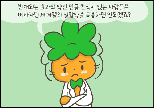 혈압약인 베타차단제와 반대되는 효과를 내는 만큼 고혈압과 천식을 함께 가진 사람은 주의해야 합니다. 가령 천식이 있다면 고혈압 약으로 베타작용제를 피해야 하는 것이죠.