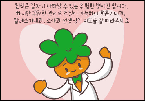 갑자기 발생하는 천식 발작은 정말 위험하지만 꾸준한 관리로 조절이 가능하니 담당 의사선생님과 극복하기 위한 노력을 하는 것이 좋겠습니다.
