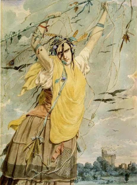 위의 작품을 보면 햄릿이 처음으로 그의 아버지 영혼을 보았을 때의 놀란 모습을 묘사하고 있습니다. 그러나 여기에도 벨이 묘사한 것과 같은 야만적인 표현보다는 이성적인 얼굴이 그려져 있습니다.