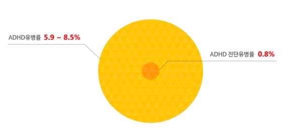 국내에서 ADHD가 얼마나 많은지 조사한 바에 따르면, 5.9~8.5% 정도로 보고되고 있다. 하지만, 건강보험공단 자료를 통해 확인되는 국내 ADHD 진단 유병률은 0.8%에 불과하다. 이는 진단될 수준의 ADHD 아동 중에 치료받는 아동이 10% 정도밖에 안 된다는 것이다.