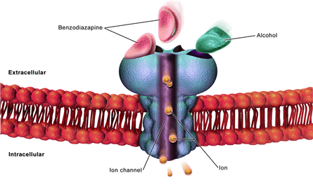 GABAA는 BZDs에 결합하는 것은 물론, 바르비투르염(barbiturate), 알코올, 마취제, 스테로이드 등의 화합물에 의해 활성된다.