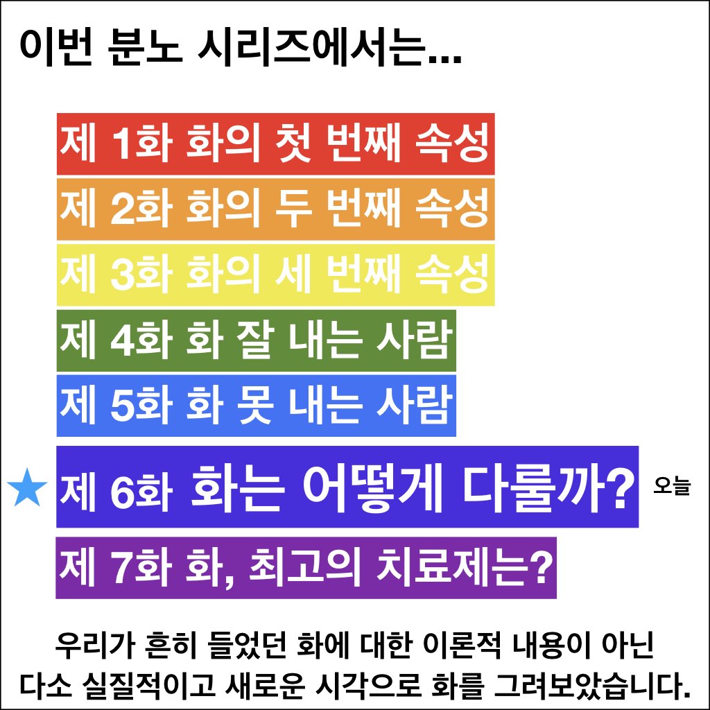 분노를 다루는 치료는 많은 방법들이 있지만, 여기서는 실제 생활 속에서의 기본적인 마인드에 대해 이야기해보려 한다. 실질적인 치료는 가까운 전문기관을 찾으면 다양하게 도움을 받을 수 있다.