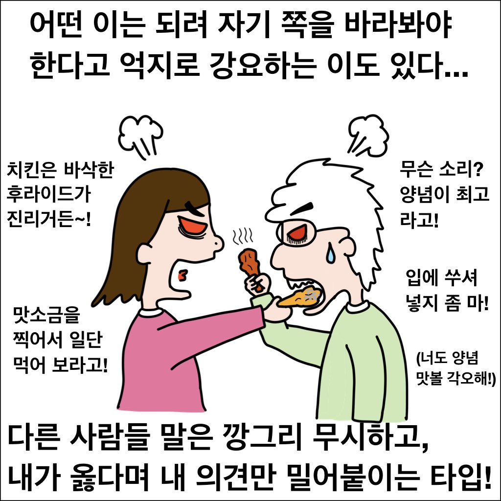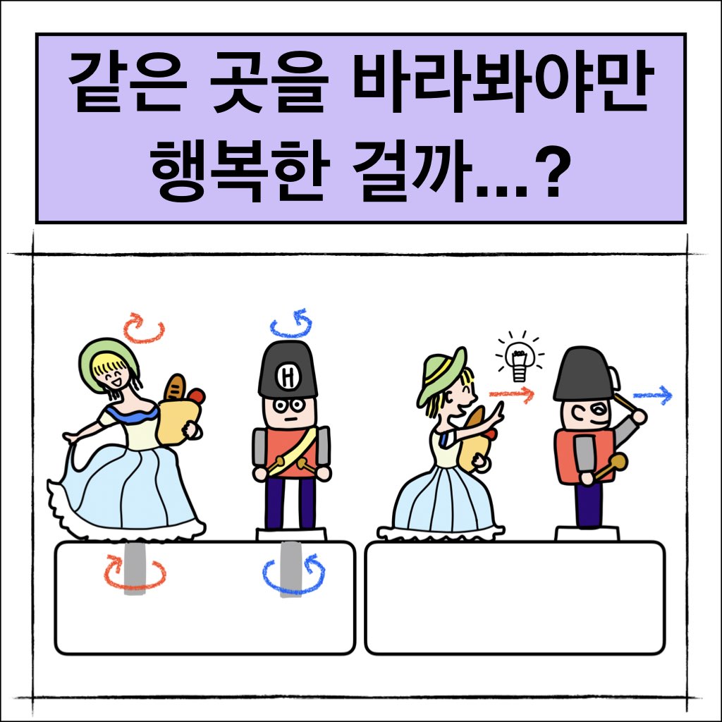 '우린 한배를 탔으니까 무조건 같은 곳을 바라보고 같은 방향으로 가야 돼!' 이런 말들이 강요처럼 들리면, 왠지 불편해져 버린다.