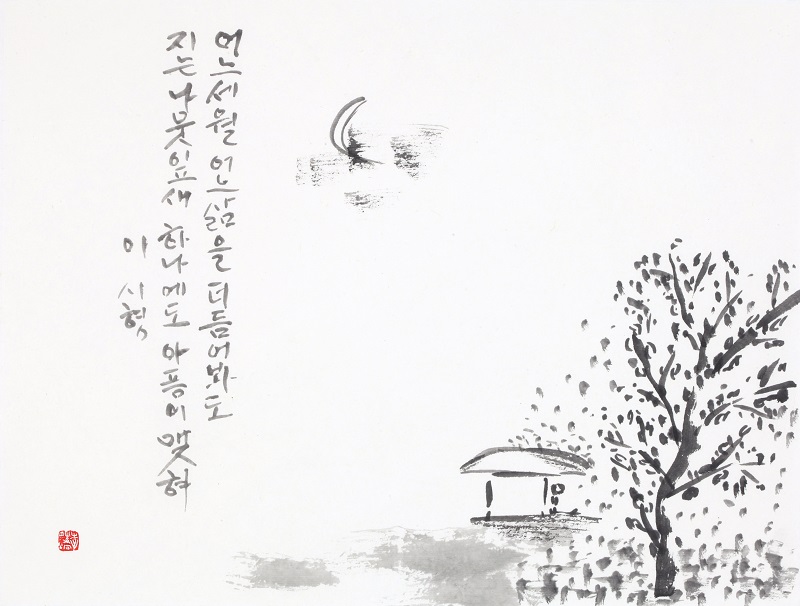 이런 심성이 문인화 수업의 가장 큰 매력이 아닌가 싶다. 낙조도 별도 달도 어느 하나 예사롭게 보이지 않고 깊은 관조의 세계로 나를 끌고 간다. 그리고 선인들은 어떤 생각을 했을까. 서점에 들러 그림책, 시집, 작품집을 훑어보는 등 작품을 대하는 내 안목이 그 전과는 차원이 달라졌다. 일상생활을 하면서도 내 머릿속은 온통 문인화로 가득 찼다. 사유와 관조, 저걸 어떻게 글로 옮기고 그림으로 표현할까 참으로 아름다운 세계가 내 머릿속에 펼쳐지고 있음을 느낀다. 내 심성이 한없이 부드러워지고 내면 세계는 평화로워지고 따뜻해졌다. 난 정말이지 문인화가 주는 축복을 만끽하고 있었다. 화실에 앉아 수첩을 꺼내들고 이를 어떻게 그릴까를 구상하는 순간도 가슴이 뛴다. 이게 치유다. 문인화는 훌륭한 치유적 예술이다. 이게 정신과 의사가 내린 결론이다.