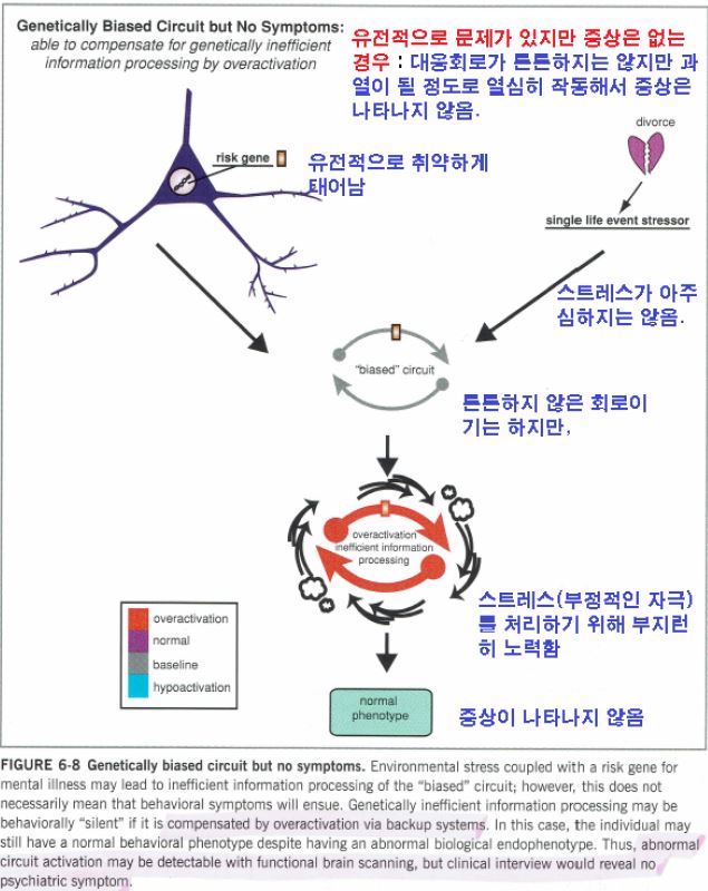 조금 취약한 유전자를 갖고 태어난 경우에도 보통의 스트레스는 증상 없이 넘어갑니다.