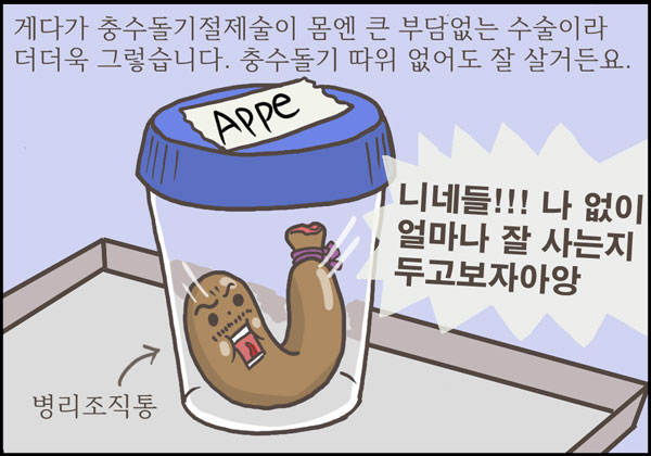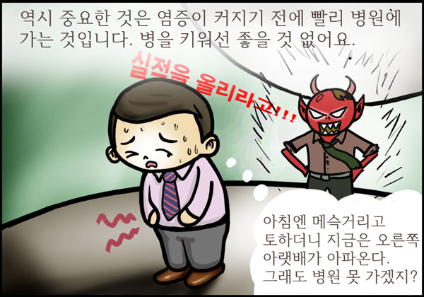 외과의 기본인 충수돌기염을 시작으로 여태까지 짬짬이 만화를 그리게 되었습니다. 외과 질환뿐만 아니라 한국인들이 경험할 수 있는 모든 의학적 문제를 다루기 시작했습니다. 처음에는 그림과 줄거리에 서툰 티가 많이 많이 나지만 점차적으로 개선되니 독자 분들께 미리 양해 부탁 드립니다^^