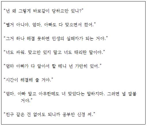 학교폭력과 관련해서 도움이 되지 않는 말에는 아래와 같은 것이 있습니다.