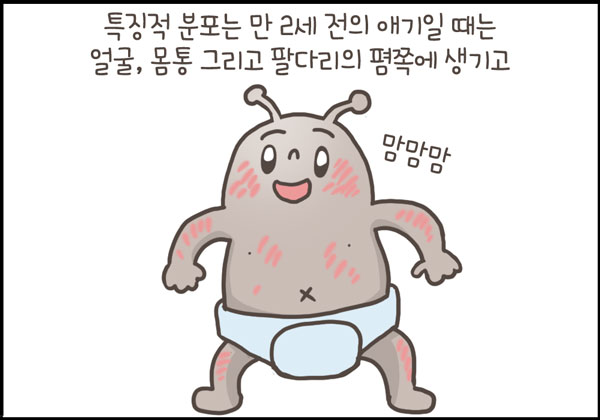 변하지 않는 사실은 아토피 피부염에 대한 일반인들의 인지도가 늘었고 비슷한 증상을 호소하는 사람들도 예전에 비해 많이 늘었다는 사실입니다. 아토피 피부염은 알레르기 비염, 천식과 함께 ‘아토피 행진’을 구성하지만 실질적으로 대개 가장 먼저, 정말 어린 아기들에서 많이 생기는 편입니다. 이런 아기들의 절반 정도는 초등학교 입학 전에 나아지긴 하지만 이후에 천식이나 알레르기 비염을 앓게 될 가능성이 일반인들보다 높습니다.