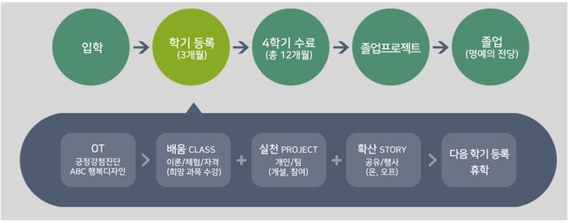 4학기 수료 후 졸업프로젝트를 완수하면 명예의 전당에 올라 평생학생 혜택을 받을 수 있다.