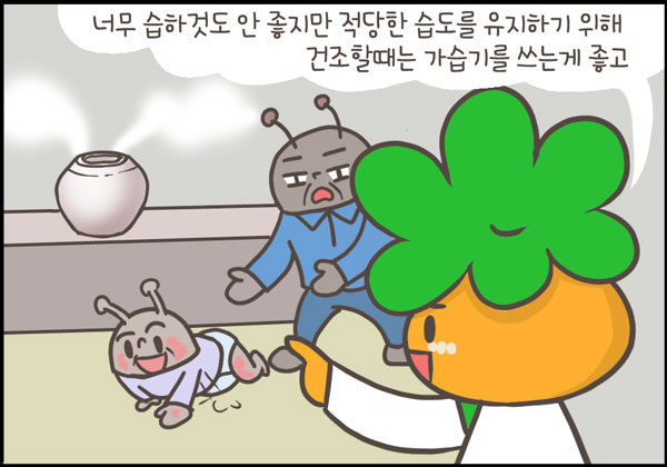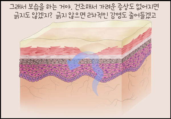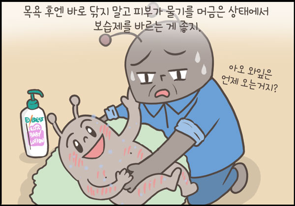 아토피 피부염은 건조한 겨울이나 봄에 심해지는 경향이 있습니다. 이것은 피부가 건조해지면서 가려워지게 되고 자연스럽게 긁게 되고, 긁게 되면 피부에 상처가 생기면서 수분이 쉽게 증발해서 건조해지는 악순환이 반복되는 것입니다. 따라서 보습제를 발라서 피부를 건조하지 않게 유지하는 것이 중요합니다. 따라서 건조한 계절에는 적절한 습도를 유지하기 위해 가습기를 사용하는 것이 중요합니다. (가습기 살균제는 쓰지 마시고요!) 씻을 때도 샤워보다는 따뜻한 욕조물에 목욕을 하고 물기가 마르기 전에 보습제를 바르는 것이 제일 효과적입니다. 피부자극이 덜한 순면 옷을 입는 것도 도움이 됩니다.