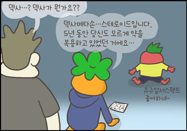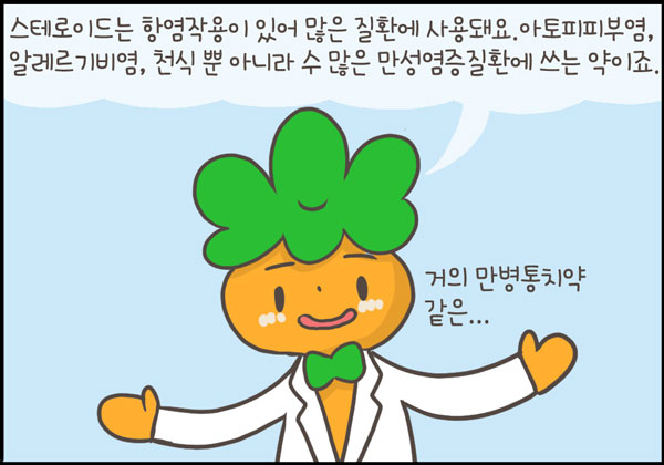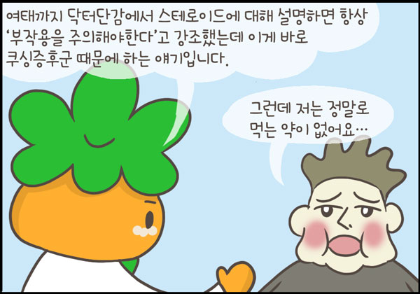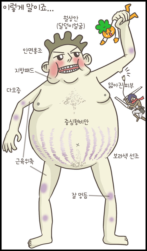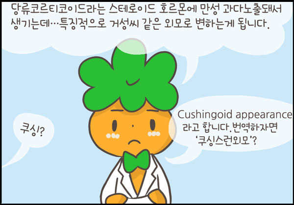 오늘은 외인성 쿠싱증후군 (iatrogenic Cushing’s syndrome)에 대해 다루어보았습니다. 쿠싱증후군을 마지막 에피소드로 하려고 했던 것은 아니지만, 닥터단감을 그리게 됐던 애시당시 목표와 통하는 부분이 있어서 나름 의미가 있는 것 같습니다.