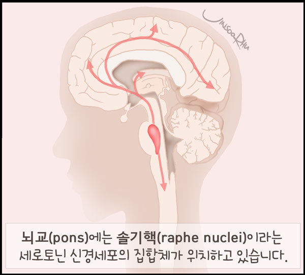 Raphe nuclei는 세로토닌serotonin 신경세포의 집합체이다.