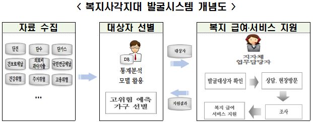 사각지대 발굴이 체계적으로 진행될 수 있도록 보건복지부 및 시도 복지 담당 과장으로 구성된 중앙단위 추진 체계를 마련하고, 추진 실적에 대한 수시·상시 점검을 강화한다.