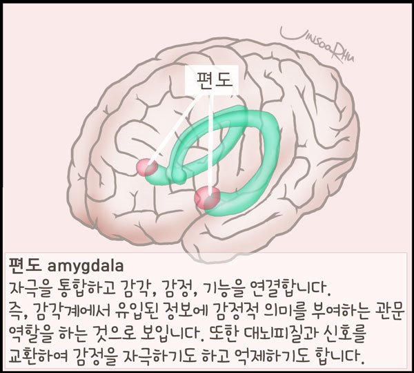 그런 정보는 쉽게 장기 기억으로 저장된다. 장기기억이 저장되는 해마 옆의 뇌의 가장 깊은 곳에 위치한 편도체(amygdala)가 공포와 같은 강한 감정 반응에 관여한다.