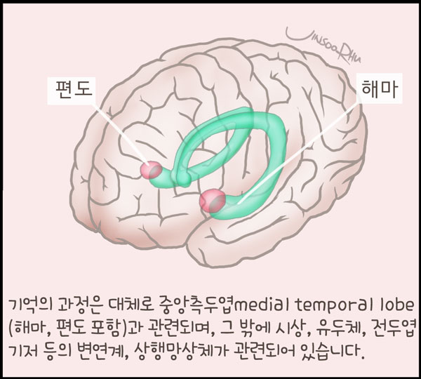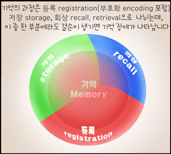 이 중 한 부분에라도 결손이 생기면 기억장애가 나타난다.