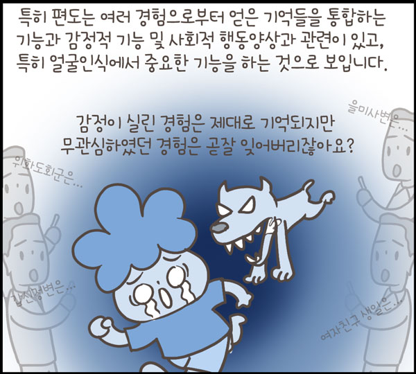 특히 편도는 여러 경험으로부터 얻은 기억들을 통합하는 기능과