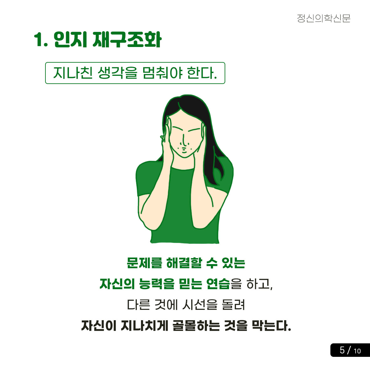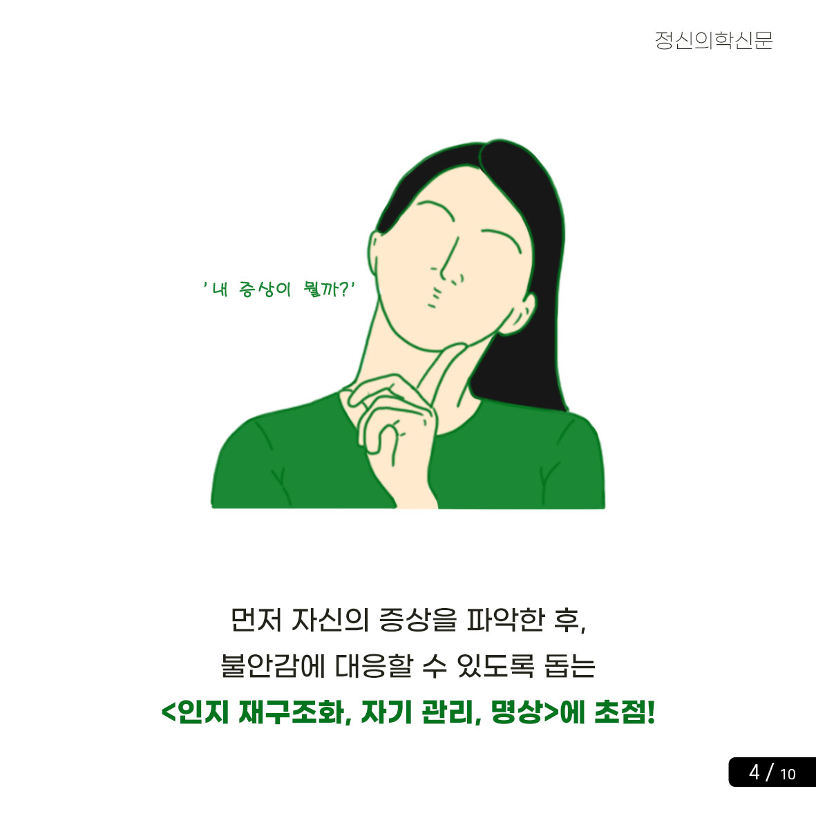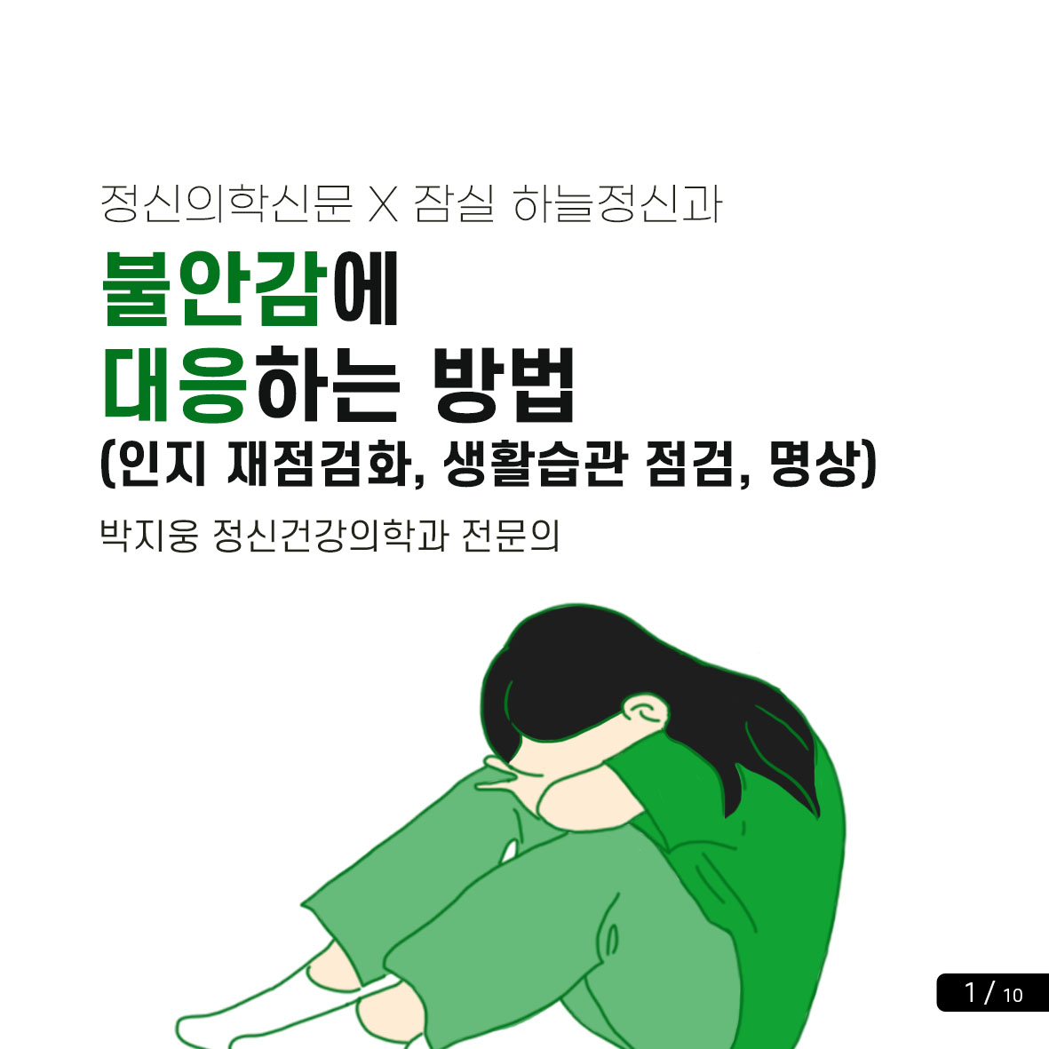원문 링크 : 불안감에 대응하는 방법 - 인지 재구조화, 생활습관 점검, 명상 박지웅 정신건강의학과 전문의 info.psynews@gmail.com 다른기사 보기 저작권자 © 정신의학신문 무단전재 및 재배포 금지 추천 뉴스 매 맞는 여성 증후군 - 사랑이라는 이름의 폭력이 남기는 상처 얼만큼 운동해야 우울증을 예방할까? 약만으로 부족할 때, 우울증에 효과적인 운동은 이것입니다 영웅의 숨겨진 아픔 - 소방관 트라우마 불안이 쉽게 사라지지 않는 뇌과학적 이유 [신간소개] 당신의 상처는 사적이지 않다 수면다원검사를 꼭 받아봐야 하는 사람 (Part 3) 우울증에 좋은 운동은 뭘까 댓글삭제 삭제한 댓글은 다시 복구할 수 없습니다. 그래도 삭제하시겠습니까? 비밀번호 닫기 기사 댓글 0 댓글 접기 댓글 내용입력 비회원 로그인 이름 비밀번호 댓글 내용입력 댓글쓰기 계정을 선택하시면 로그인·계정인증을 통해 댓글을 남기실 수 있습니다. 회원 로그인 비회원 글쓰기 이름 비밀번호 자동등록방지 로그인 옵션 창닫기 주요기사 대인기피증 사회불안장애 극복하기 [Doctor's Mail] 연속된 사업 실패, 재기를 위해 노력하지만 힘듭니다 아직은 괜찮습니다 6화 나는 언제나 완성되어가는 중이다 불안장애와 공황장애 어떻게 다른가요 수면의 질과 ADHD의 상호작용 약만으로 부족할 때, 우울증에 효과적인 운동은 이것입니다