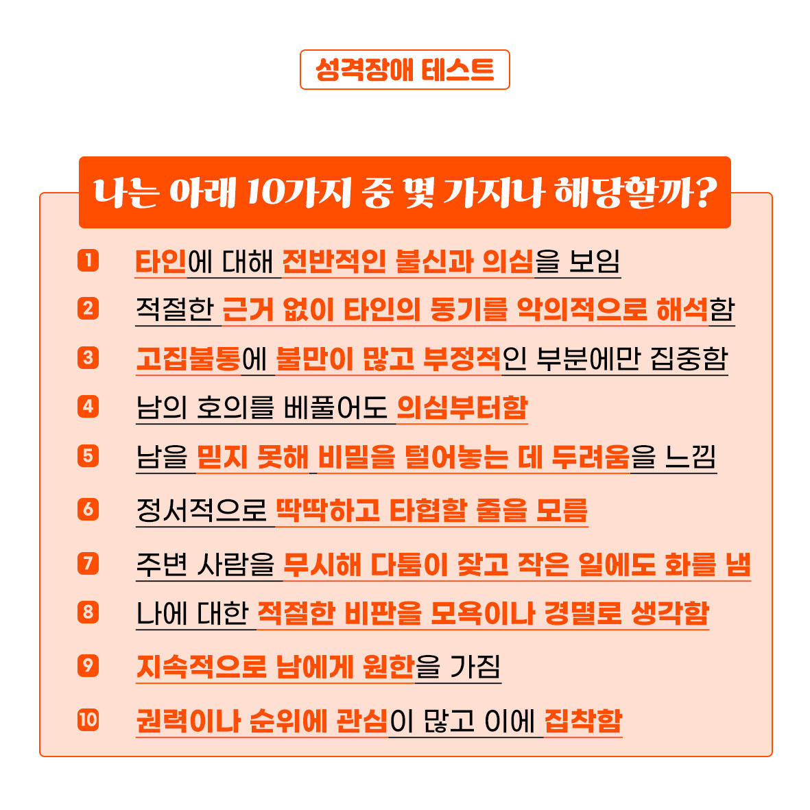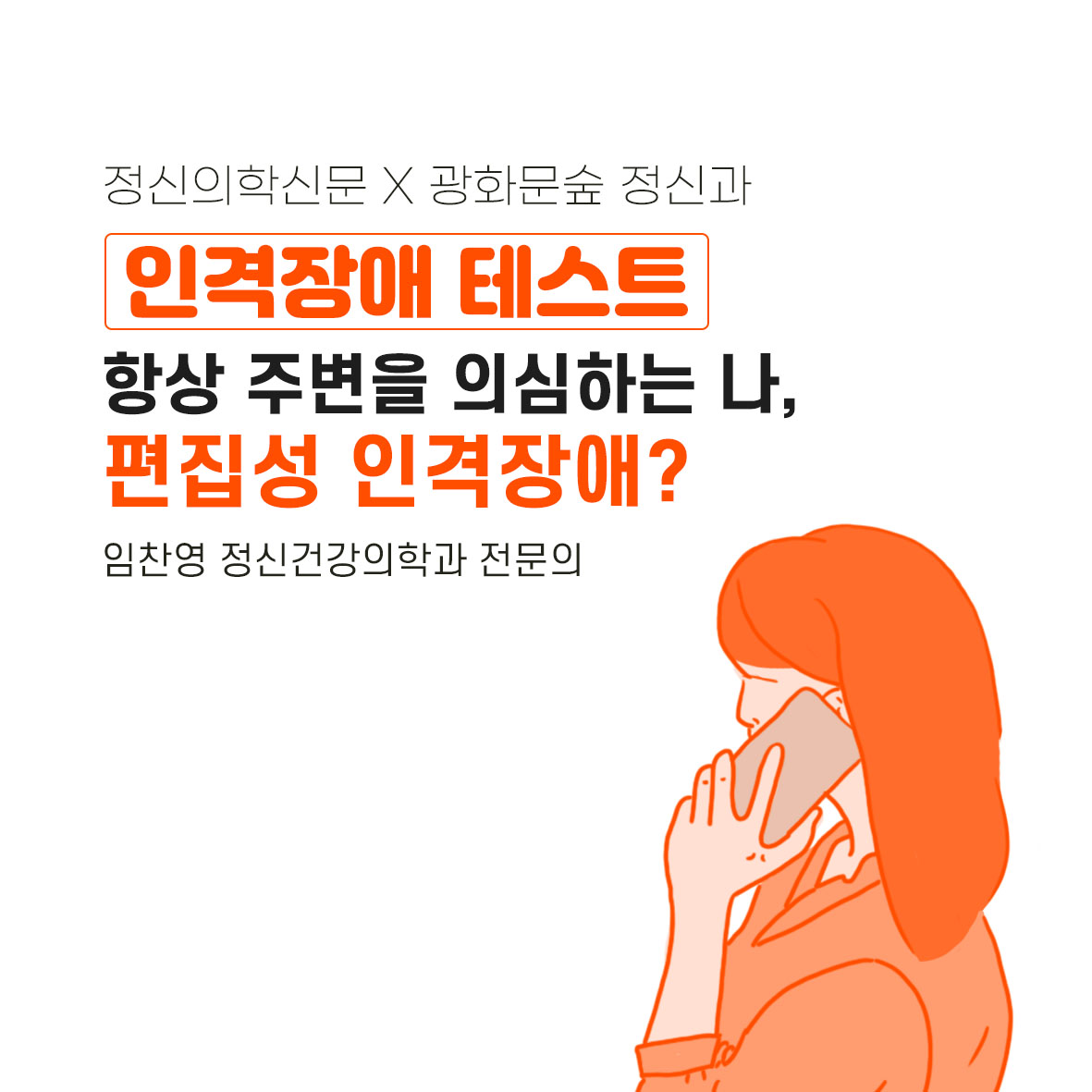 원문 보기 : 항상 주변을 의심하는 당신, 편집성 인격장애? 임찬영 정신건강의학과 전문의 info.psynews@gmail.com 다른기사 보기 저작권자 © 정신의학신문 무단전재 및 재배포 금지 추천 뉴스 매 맞는 여성 증후군 - 사랑이라는 이름의 폭력이 남기는 상처 얼만큼 운동해야 우울증을 예방할까? 약만으로 부족할 때, 우울증에 효과적인 운동은 이것입니다 영웅의 숨겨진 아픔 - 소방관 트라우마 불안이 쉽게 사라지지 않는 뇌과학적 이유 [신간소개] 당신의 상처는 사적이지 않다 수면다원검사를 꼭 받아봐야 하는 사람 (Part 3) 우울증에 좋은 운동은 뭘까 댓글삭제 삭제한 댓글은 다시 복구할 수 없습니다. 그래도 삭제하시겠습니까? 비밀번호 닫기 기사 댓글 0 댓글 접기 댓글 내용입력 비회원 로그인 이름 비밀번호 댓글 내용입력 댓글쓰기 계정을 선택하시면 로그인·계정인증을 통해 댓글을 남기실 수 있습니다. 회원 로그인 비회원 글쓰기 이름 비밀번호 자동등록방지 로그인 옵션 창닫기 주요기사 대인기피증 사회불안장애 극복하기 [Doctor's Mail] 연속된 사업 실패, 재기를 위해 노력하지만 힘듭니다 아직은 괜찮습니다 6화 나는 언제나 완성되어가는 중이다 불안장애와 공황장애 어떻게 다른가요 수면의 질과 ADHD의 상호작용 약만으로 부족할 때, 우울증에 효과적인 운동은 이것입니다