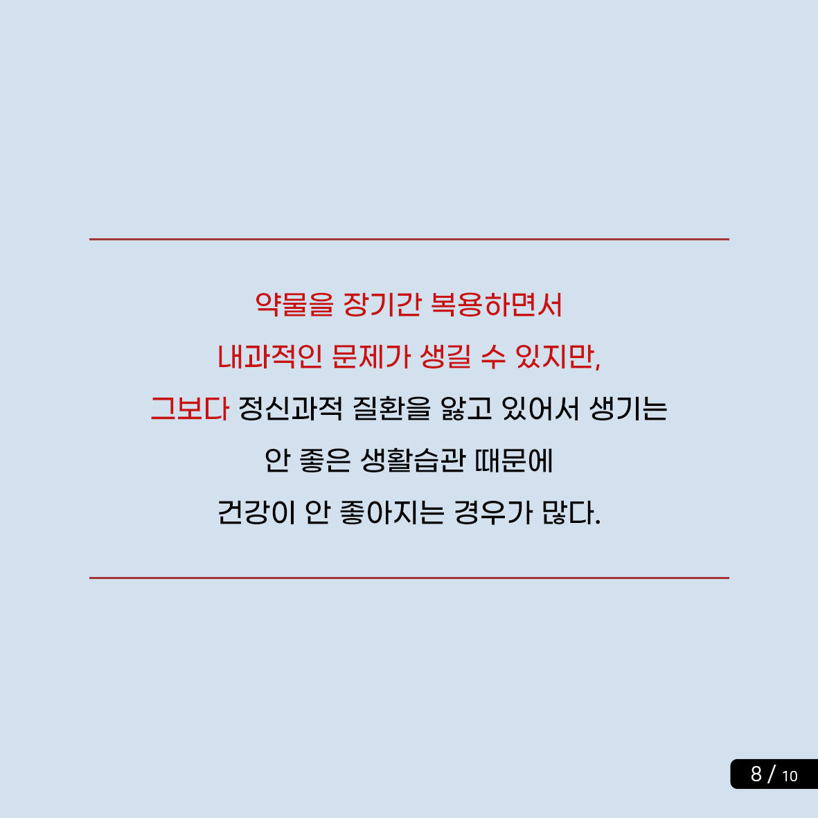 주요기사 대인기피증 사회불안장애 극복하기 [Doctor's Mail] 연속된 사업 실패, 재기를 위해 노력하지만 힘듭니다 아직은 괜찮습니다 6화 나는 언제나 완성되어가는 중이다 불안장애와 공황장애 어떻게 다른가요 수면의 질과 ADHD의 상호작용 약만으로 부족할 때, 우울증에 효과적인 운동은 이것입니다