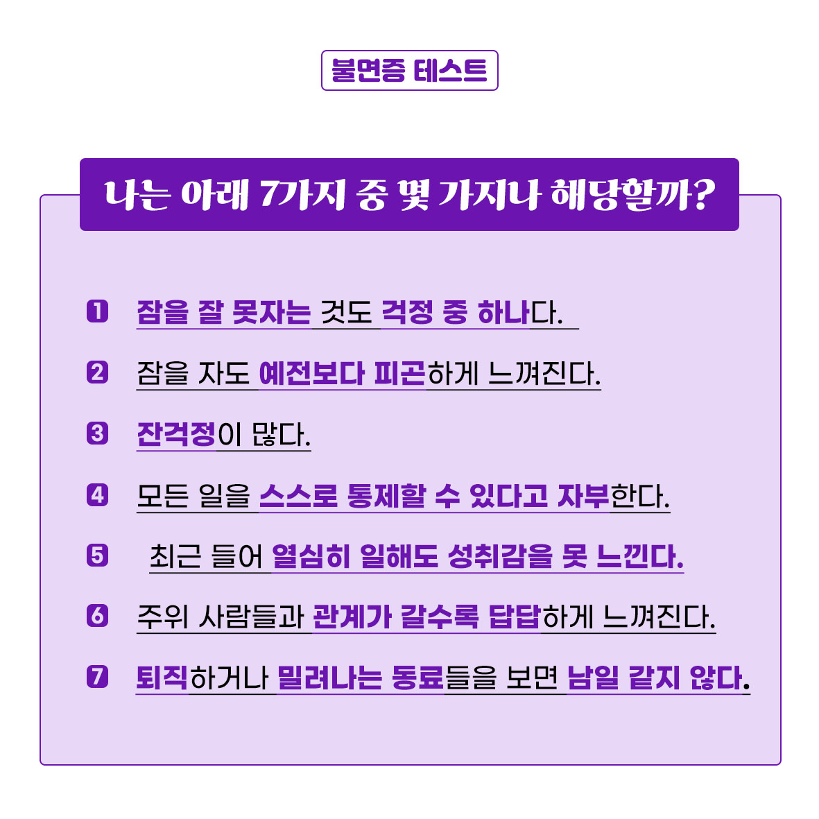 정신과 약을 복용하는 군인, 어떤 생각이 드시나요? [카드뉴스] 인생이 잘 안 풀리는 사람들의 무의식적인 말버릇 [카드뉴스] 젊은 꼰대 - 수직적 인간관계에 익숙한 사람들 [카드뉴스] 유독 걱정이 많은 사람이 기억하면 좋을 습관 퇴근 후 만사가 귀찮고 재미없다면?