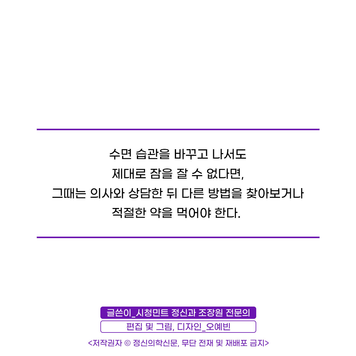 조장원 정신건강의학과 전문의 민트 정신건강의학과 원장 원문보기 : 잠 못 이루는 밤이 길어질 때 - 불면증에 대한 오해와 진실 조장원 정신건강의학과 전문의 민트 정신건강의학과 원장 한양대학교 의과대학 학사, 석사, 전공의 대한신경정신의학회 정회원 저서 <나를 지키는 심리학> 전문의 홈 가기 조장원 전문의의 대표칼럼 정신과 약을 복용하는 군인, 어떤 생각이 드시나요? 정신과 약을 복용하는 군인, 어떤 생각이 드시나요? [카드뉴스] 인생이 잘 안 풀리는 사람들의 무의식적인 말버릇 [카드뉴스] 젊은 꼰대 - 수직적 인간관계에 익숙한 사람들 [카드뉴스] 유독 걱정이 많은 사람이 기억하면 좋을 습관 퇴근 후 만사가 귀찮고 재미없다면? 조장원 정신건강의학과 전문의 info.psynews@gmail.com 다른기사 보기 저작권자 © 정신의학신문 무단전재 및 재배포 금지 추천 뉴스 매 맞는 여성 증후군 - 사랑이라는 이름의 폭력이 남기는 상처 얼만큼 운동해야 우울증을 예방할까? 약만으로 부족할 때, 우울증에 효과적인 운동은 이것입니다 영웅의 숨겨진 아픔 - 소방관 트라우마 불안이 쉽게 사라지지 않는 뇌과학적 이유 [신간소개] 당신의 상처는 사적이지 않다 수면다원검사를 꼭 받아봐야 하는 사람 (Part 3) 우울증에 좋은 운동은 뭘까 댓글삭제 삭제한 댓글은 다시 복구할 수 없습니다. 그래도 삭제하시겠습니까? 비밀번호 닫기 기사 댓글 0 댓글 접기 댓글 내용입력 비회원 로그인 이름 비밀번호 댓글 내용입력 댓글쓰기 계정을 선택하시면 로그인·계정인증을 통해 댓글을 남기실 수 있습니다. 회원 로그인 비회원 글쓰기 이름 비밀번호 자동등록방지 로그인 옵션 창닫기 주요기사 대인기피증 사회불안장애 극복하기 [Doctor's Mail] 연속된 사업 실패, 재기를 위해 노력하지만 힘듭니다 아직은 괜찮습니다 6화 나는 언제나 완성되어가는 중이다 불안장애와 공황장애 어떻게 다른가요 수면의 질과 ADHD의 상호작용 약만으로 부족할 때, 우울증에 효과적인 운동은 이것입니다