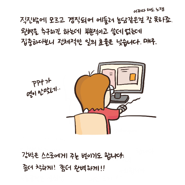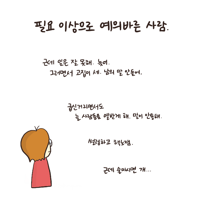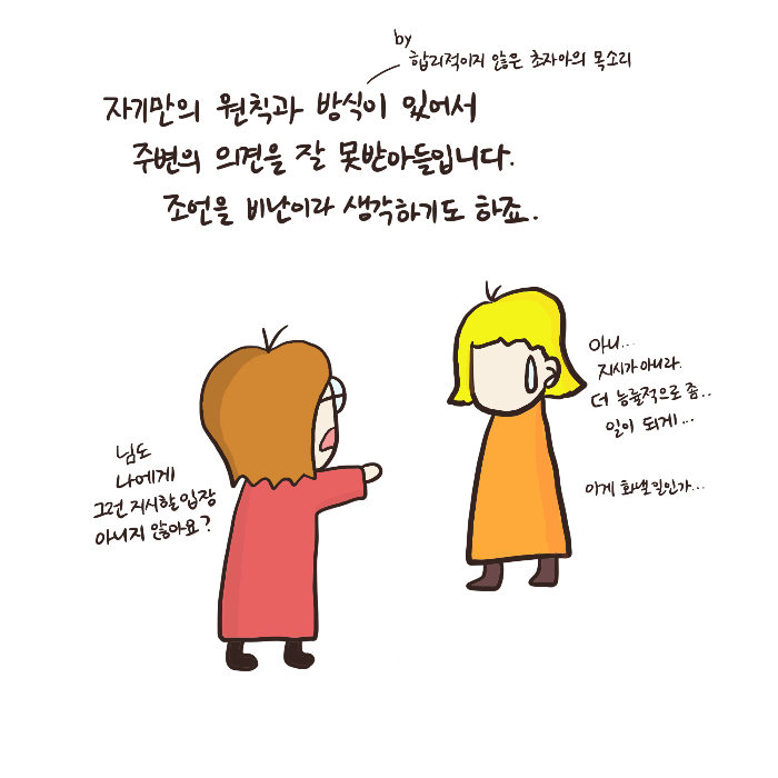 치치 2021-01-23 18:54:30 더보기 삭제하기 저도 조금 그런 편인 것 같아요. 융통성이 많이 부족하고 재치도 없고. 상황을 좀 더 유연하게 받아들이려는 노력을 해야겠네요.