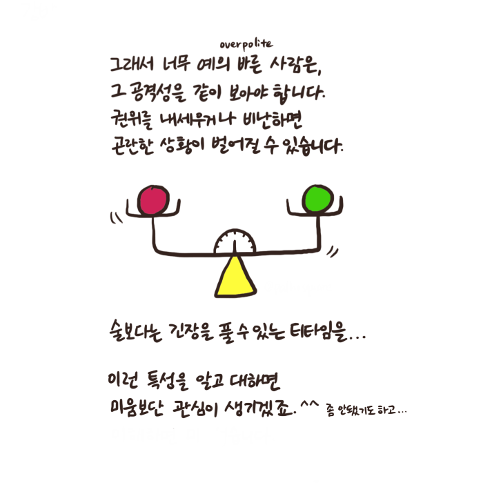 기사 댓글 3 댓글 접기 댓글 내용입력 비회원 로그인 이름 비밀번호 댓글 내용입력 댓글쓰기 계정을 선택하시면 로그인·계정인증을 통해 댓글을 남기실 수 있습니다. 회원 로그인 비회원 글쓰기 이름 비밀번호 자동등록방지 로그인 옵션 창닫기 댓글목록 최신순 추천순 욕설, 타인비방 등의 게시물은 예고 없이 삭제 될 수 있습니다. 그런거 같습니다. 2021-07-29 22:43:31 더보기 삭제하기 제가 좀 그런거 같아요 앞으로 좀 고쳐 나가야 할 것 같아 치치 2021-01-23 18:54:30 더보기 삭제하기 저도 조금 그런 편인 것 같아요. 융통성이 많이 부족하고 재치도 없고. 상황을 좀 더 유연하게 받아들이려는 노력을 해야겠네요. 아이고 2020-10-30 18:00:40 더보기 삭제하기 너무 정확하게 난데....