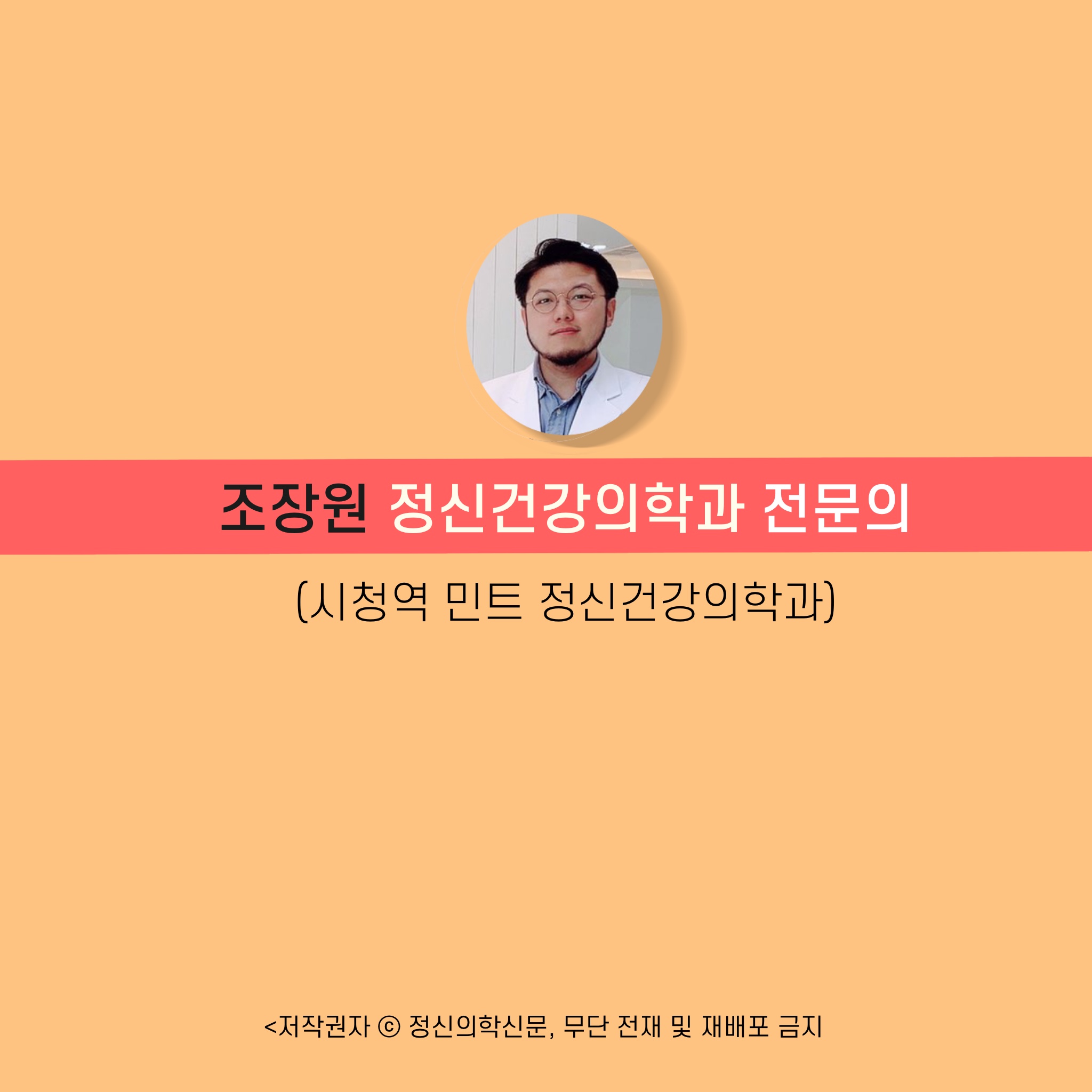 조장원 전문의의 대표칼럼 정신과 약을 복용하는 군인, 어떤 생각이 드시나요? 정신과 약을 복용하는 군인, 어떤 생각이 드시나요? [카드뉴스] 인생이 잘 안 풀리는 사람들의 무의식적인 말버릇 [카드뉴스] 젊은 꼰대 - 수직적 인간관계에 익숙한 사람들 [카드뉴스] 유독 걱정이 많은 사람이 기억하면 좋을 습관 퇴근 후 만사가 귀찮고 재미없다면?