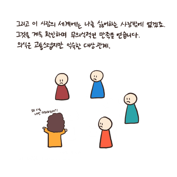 박진 2021-02-09 00:51:05 더보기 삭제하기 투사적동일시 개념 어려워서 이거저거 찾아보다가 이 게시글 보게 되었는데요. 이해하기 쉽게 잘 만들어주셨네요^^ 덕분에 다른 만화도 쭉 몰아보며 유익했네요. 감사합니다^^