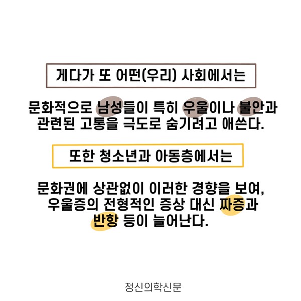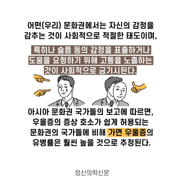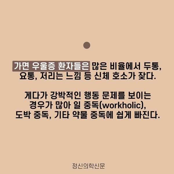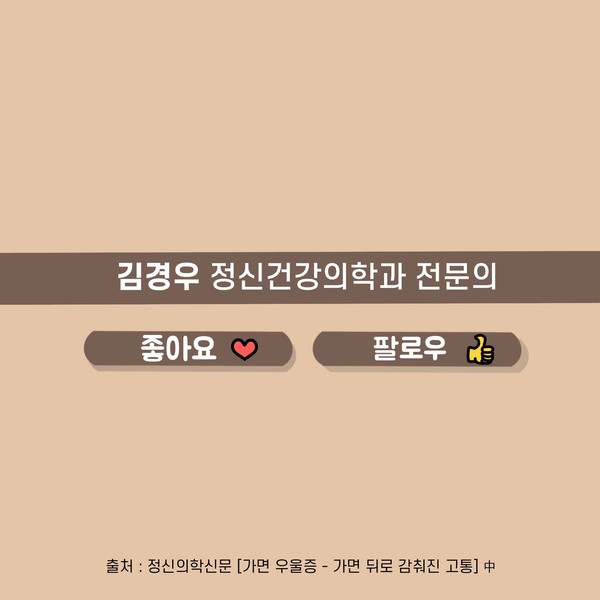 관련기사 가면 우울증 - 가면 뒤로 감춰진 고통 [가면증후군 ] 가면을 쓰고 있다고 느껴진다면? 키워드 #우울증 #가면우울증 #가면성우울증 #불안 김경우 정신건강의학과 전문의 info.psynews@gmail.com 다른기사 보기 저작권자 © 정신의학신문 무단전재 및 재배포 금지 추천 뉴스 매 맞는 여성 증후군 - 사랑이라는 이름의 폭력이 남기는 상처 얼만큼 운동해야 우울증을 예방할까? 영웅의 숨겨진 아픔 - 소방관 트라우마 약만으로 부족할 때, 우울증에 효과적인 운동은 이것입니다 불안이 쉽게 사라지지 않는 뇌과학적 이유 [신간소개] 당신의 상처는 사적이지 않다 수면다원검사를 꼭 받아봐야 하는 사람 (Part 3) 우울증에 좋은 운동은 뭘까 댓글삭제 삭제한 댓글은 다시 복구할 수 없습니다. 그래도 삭제하시겠습니까? 비밀번호 닫기 기사 댓글 0 댓글 접기 댓글 내용입력 비회원 로그인 이름 비밀번호 댓글 내용입력 댓글쓰기 계정을 선택하시면 로그인·계정인증을 통해 댓글을 남기실 수 있습니다. 회원 로그인 비회원 글쓰기 이름 비밀번호 자동등록방지 로그인 옵션 창닫기 주요기사 대인기피증 사회불안장애 극복하기 [Doctor's Mail] 연속된 사업 실패, 재기를 위해 노력하지만 힘듭니다 아직은 괜찮습니다 6화 나는 언제나 완성되어가는 중이다 불안장애와 공황장애 어떻게 다른가요 수면의 질과 ADHD의 상호작용 약만으로 부족할 때, 우울증에 효과적인 운동은 이것입니다