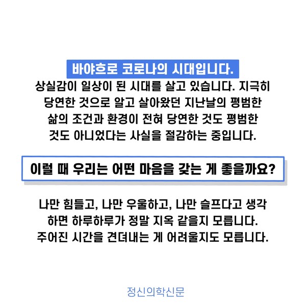 추천 뉴스 매 맞는 여성 증후군 - 사랑이라는 이름의 폭력이 남기는 상처 얼만큼 운동해야 우울증을 예방할까? 약만으로 부족할 때, 우울증에 효과적인 운동은 이것입니다 영웅의 숨겨진 아픔 - 소방관 트라우마 불안이 쉽게 사라지지 않는 뇌과학적 이유 [신간소개] 당신의 상처는 사적이지 않다 수면다원검사를 꼭 받아봐야 하는 사람 (Part 3)
