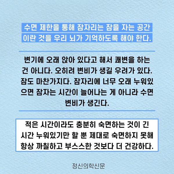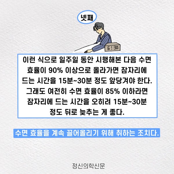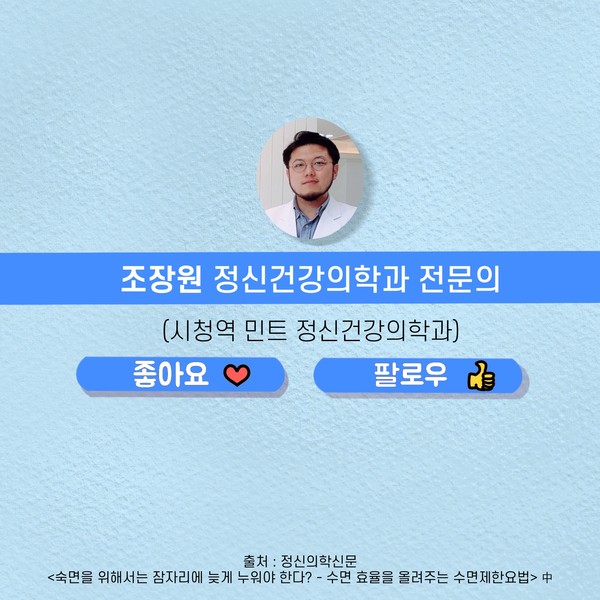 조장원 정신건강의학과 전문의 민트 정신건강의학과 원장 조장원 정신건강의학과 전문의 민트 정신건강의학과 원장 한양대학교 의과대학 학사, 석사, 전공의 대한신경정신의학회 정회원 저서 <나를 지키는 심리학> 전문의 홈 가기 조장원 전문의의 대표칼럼 정신과 약을 복용하는 군인, 어떤 생각이 드시나요? 정신과 약을 복용하는 군인, 어떤 생각이 드시나요? [카드뉴스] 인생이 잘 안 풀리는 사람들의 무의식적인 말버릇 [카드뉴스] 젊은 꼰대 - 수직적 인간관계에 익숙한 사람들 [카드뉴스] 유독 걱정이 많은 사람이 기억하면 좋을 습관 퇴근 후 만사가 귀찮고 재미없다면? 관련기사 숙면을 위해서는 잠자리에 늦게 누워야 한다? - 수면 효율을 올려주는 수면제한요법 키워드 #수면 #수면장애 #불면증 #스트레스 조장원 정신건강의학과 전문의 info.psynews@gmail.com 다른기사 보기 저작권자 © 정신의학신문 무단전재 및 재배포 금지 추천 뉴스 매 맞는 여성 증후군 - 사랑이라는 이름의 폭력이 남기는 상처 얼만큼 운동해야 우울증을 예방할까? 약만으로 부족할 때, 우울증에 효과적인 운동은 이것입니다 영웅의 숨겨진 아픔 - 소방관 트라우마 불안이 쉽게 사라지지 않는 뇌과학적 이유 [신간소개] 당신의 상처는 사적이지 않다 수면다원검사를 꼭 받아봐야 하는 사람 (Part 3) 우울증에 좋은 운동은 뭘까 댓글삭제 삭제한 댓글은 다시 복구할 수 없습니다. 그래도 삭제하시겠습니까? 비밀번호 닫기 기사 댓글 0 댓글 접기 댓글 내용입력 비회원 로그인 이름 비밀번호 댓글 내용입력 댓글쓰기 계정을 선택하시면 로그인·계정인증을 통해 댓글을 남기실 수 있습니다. 회원 로그인 비회원 글쓰기 이름 비밀번호 자동등록방지 로그인 옵션 창닫기 주요기사 대인기피증 사회불안장애 극복하기 [Doctor's Mail] 연속된 사업 실패, 재기를 위해 노력하지만 힘듭니다 아직은 괜찮습니다 6화 나는 언제나 완성되어가는 중이다 불안장애와 공황장애 어떻게 다른가요 수면의 질과 ADHD의 상호작용 약만으로 부족할 때, 우울증에 효과적인 운동은 이것입니다