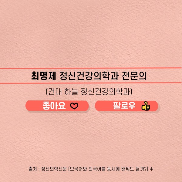 최명제 전문의의 대표칼럼 알코올 의존증 극복할 수 있습니다 난 게으른 걸까, 우울한 걸까? 무기력과 우울, 건강한 대처법 불안장애의 약물 [착각적 상관] 우리의 뇌는 무심코 선택의 지름길을 택한다 번아웃과 우울증을 구분하는 법 외국어를 배울 때 우리 뇌에서는 어떤 변화가 생길까?