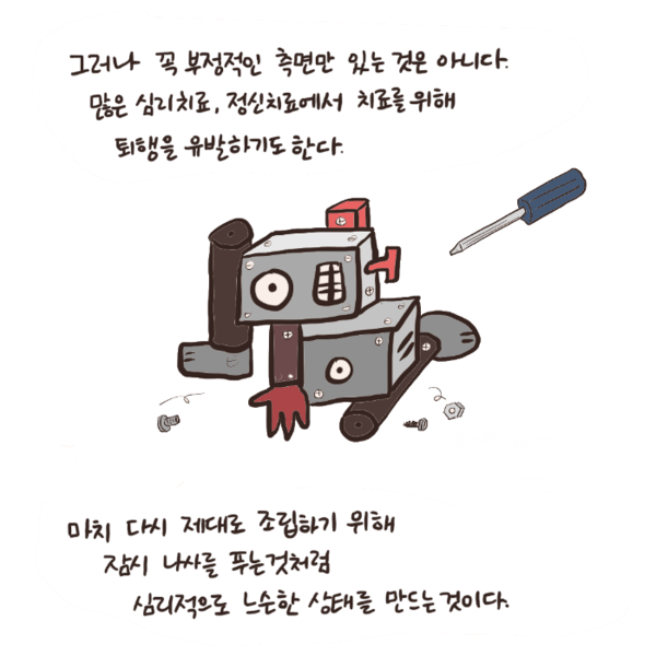 건강한 퇴행 작가의 말 / 넌 그 동안 퇴행을 소중히 여기지 않았지. 이 참에 소중히 대해보길. 키워드 #정신건강의학과 #정신과 #심리학 #심리 #웹툰 #인스타툰 #심리툰 #퇴행 팔호광장 Instagram@palhosquare 다른기사 보기 저작권자 © 정신의학신문 무단전재 및 재배포 금지 추천 뉴스 매 맞는 여성 증후군 - 사랑이라는 이름의 폭력이 남기는 상처 얼만큼 운동해야 우울증을 예방할까? 약만으로 부족할 때, 우울증에 효과적인 운동은 이것입니다 영웅의 숨겨진 아픔 - 소방관 트라우마 불안이 쉽게 사라지지 않는 뇌과학적 이유 [신간소개] 당신의 상처는 사적이지 않다 수면다원검사를 꼭 받아봐야 하는 사람 (Part 3) 우울증에 좋은 운동은 뭘까 댓글삭제 삭제한 댓글은 다시 복구할 수 없습니다. 그래도 삭제하시겠습니까? 비밀번호 닫기 기사 댓글 0 댓글 접기 댓글 내용입력 비회원 로그인 이름 비밀번호 댓글 내용입력 댓글쓰기 계정을 선택하시면 로그인·계정인증을 통해 댓글을 남기실 수 있습니다. 회원 로그인 비회원 글쓰기 이름 비밀번호 자동등록방지 로그인 옵션 창닫기 주요기사 대인기피증 사회불안장애 극복하기 [Doctor's Mail] 연속된 사업 실패, 재기를 위해 노력하지만 힘듭니다 아직은 괜찮습니다 6화 나는 언제나 완성되어가는 중이다 불안장애와 공황장애 어떻게 다른가요 수면의 질과 ADHD의 상호작용 약만으로 부족할 때, 우울증에 효과적인 운동은 이것입니다
